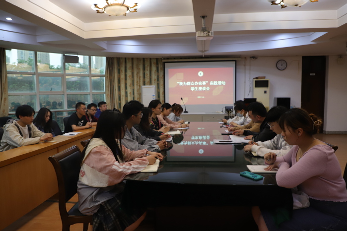 5月6日下午,“我为群众办实事”实践活动巫山路校区学生座谈会在1#206会议室召开。外国语学院、人文学院、师范学院、艺术与设计学院的16名学生代表参加座谈,校团委书记许文婷、副书记顾勇参加座谈会并听取学生意见与建议。