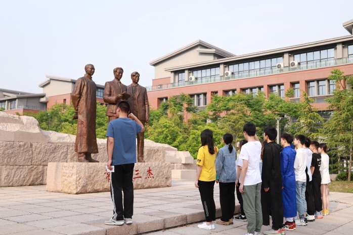 随后,全体人员移步“三杰”群雕广场,重温入团誓词。蓝天白云、夏风和煦,同学们沉浸于庄严肃穆的氛围中,浸润于革命先烈的精神伟力,与“三杰”再一次进行灵魂交流。