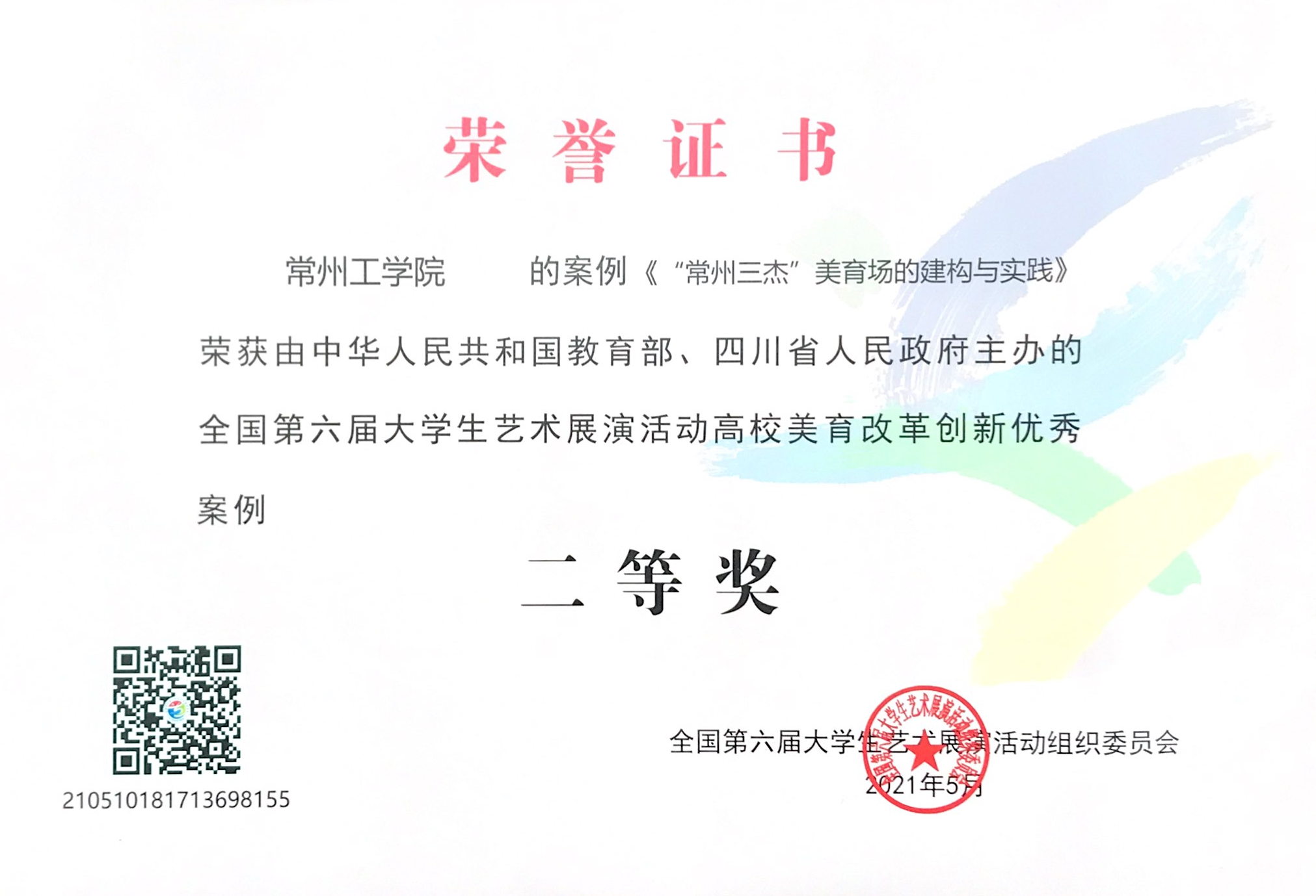 近日,全国第六届大学生艺术展演活动在四川成都圆满落幕。我校《“常州三杰”美育场的建构与实践》以省赛特等奖入围本届展演,最终荣获高校美育改革创新优秀案例二等奖,实现了我校参加大学生艺术展演国赛成绩的历史性突破。