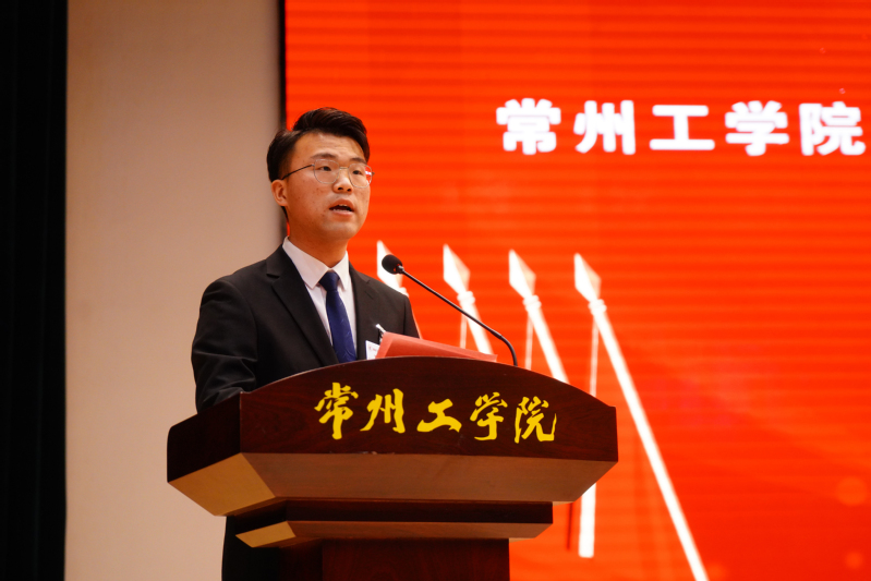 下午2点,大会在激昂的国歌声中拉开序幕。兄弟高校学生会代表江苏理工学院学生会执行主席虞佳杰致辞。他希望未来能继续与我校学生会组织加强交流合作,相互学习,更好地为广大同学服务,为学校建设发展做贡献。