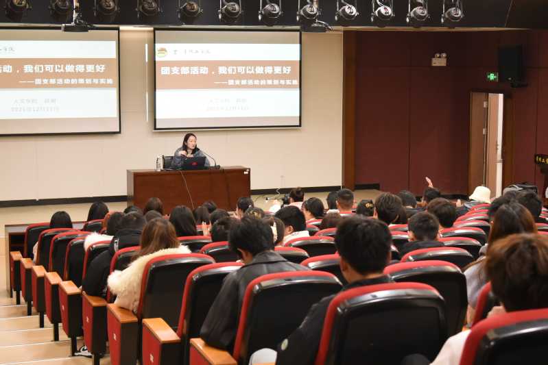 人文学院团委书记薛姗以《团支部活动策划与实施》为题开展第三场培训。她重点阐述了主题团日活动、信仰公开课、青年大学习三类团支部活动。她希望团支书能够创新团支部活动形式,丰富活动内容。