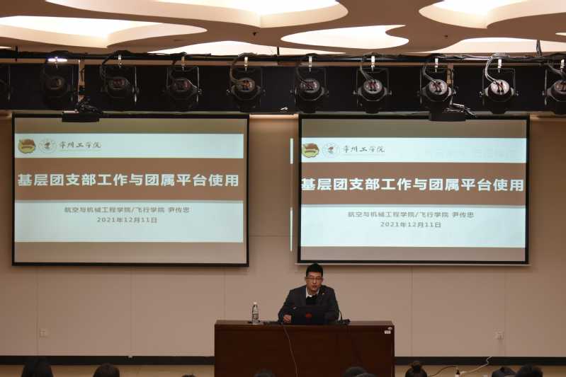 航空与机械工程学院/飞行学院团委书记尹传忠以《基层团支部工作与团属平台使用》为题首先开讲,他从职责、基本任务、重点工作、特色工作项、基础工作项以及组织生活(工作机制)六个方面解读基层团支书清单,而后阐述了江苏高校“团支部工作成绩单”、PU平台及智慧团建系统等团属平台使用规则。他希望团支书能够学习文件,领会精神,切实履行团支书职责。