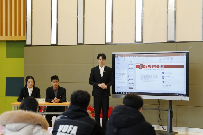会上,各二级学院学生会主席团成员依次述职。他们围绕思想引领、成长服务、权益维护、组织建设、新媒体建设等方面,对本学院学生会工作进行介绍,既有对相关工作体会的交流,也有对品牌创新工作的分享,内容丰富、重点突出,充分展现二级学院学生会积极向上、勇于创新的精神风貌。
