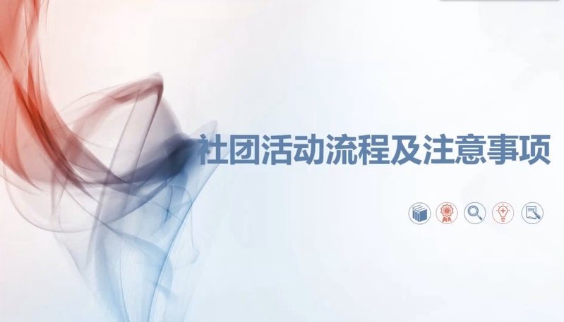 本次培训会由邢斯淇主持,李殷主讲。李殷首先提出此次培训旨在让社团工作相关人员掌握学事通平台申报社团活动的方法,实现无纸化申报和线上审批。接着结合《常州工学院社团建设管理实施细则》,讲解了社团活动的申报流程以及注意事项,活动开展要严格遵守校内规章制度。然后,李殷对学事通的操作步骤与实施细则进行详细讲解,规范学事通平台活动申请表和活动总结表的填写,明确了疫情在校期间开展线上线下社团活动的总体要求。讲解结束后,李殷对相关社团提出的疑问作出解答。