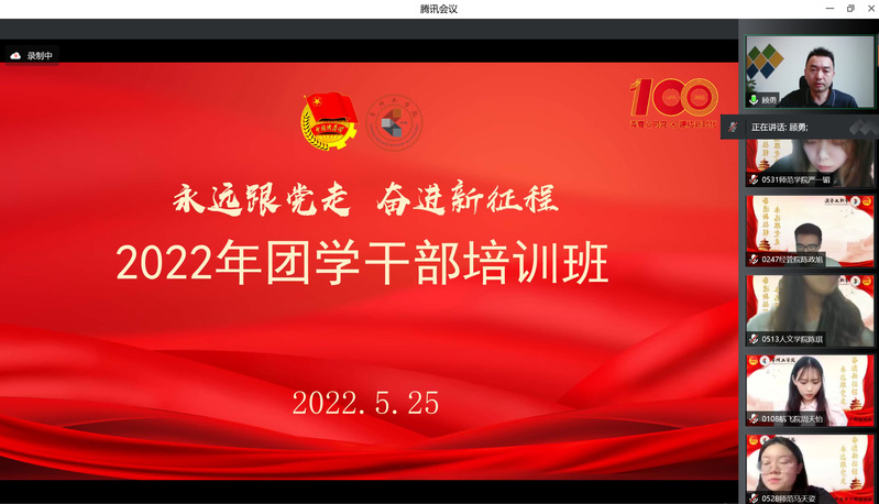 为深入学习宣传贯彻习近平总书记在庆祝中国共产主义青年团成立100周年大会上重要讲话精神,铸牢团学干部对党忠诚的政治品格,培育一支信念坚定、清澈纯粹、担当实干、本领高强的青年团学干部队伍,5月25日下午,我校2022年团学干部培训班正式开班,本次培训班采用线上与线下相结合方式开展。校团委副书记顾勇参加开班仪式并作培训动员。来自校、院两级学生会和其他学生组织的团学骨干近300人参加培训。