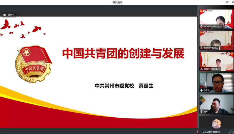 下午两点,中共常州市委党校蔡嘉生老师受邀向学员们作《中国共青团的创建与发展》专题讲座,蔡老师从习近平总书记在庆祝中国共产主义青年团成立100周年大会上的重要讲话展开,结合丰富的史料,讲述了共青团从创建到根本改造、共青团服务社会主义建设、共青团投身改革开放大潮和全面推进从严治团四个方面的内容,深刻阐明了百年来中国共青团在中国共产党的领导下,不怕牺牲、浴血斗争,敢于拼搏、辛勤劳动,敢闯敢干、引领风尚,自信自强、刚健有为的优良传统,团结带领青年用青春和热血书写了彪炳史册的壮丽篇章。