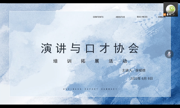 6月8日下午,演讲与口才协会在线上开展培训拓展活动,本次培训的主题是“观看华语辩论世界杯,学习辩论技巧”。活动由社长徐硕晗主持。