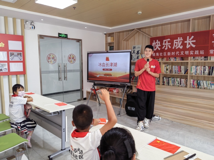 为落实党中央推动党史学习教育常态化长效化有关要求,帮助社区小朋友学习党史,厚植爱党爱国情怀,7月7日上午,师范学院“阳光播种队”走进新北区新桥街道锦海社区开展了党史宣讲活动,本次活动由师范学院团委副书记王同灿带队,阳光播种队主要骨干成员参加了本次活动。