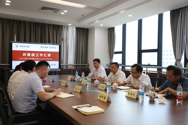8月18日下午,校长张兵、党委副书记王传金在文化艺术中心B306调研、指导学校共青团和学生会工作,校长办公室主任刘春节、发展规划办公室主任周泽民、校团委全体人员参加调研。