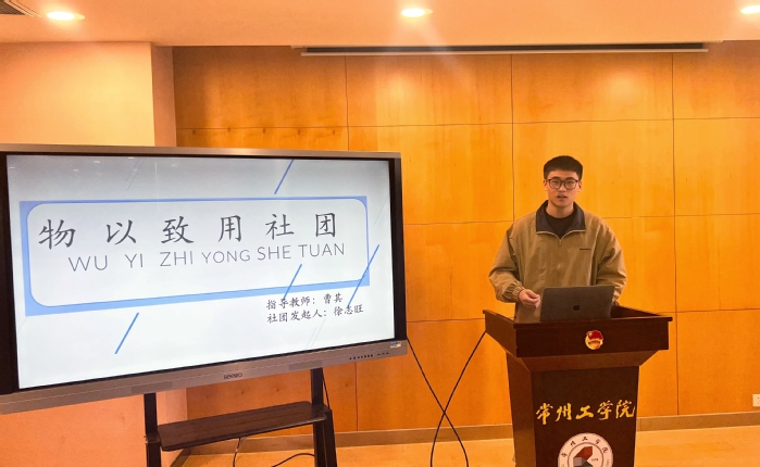 徐志旺从引用习近平总书记的话“建设绿色家园是人类共同的期盼”开始,指出在碳中和的大背景下,新能源建筑被公认为建筑行业中最具成长价值的领域。物以致用社团将致力于新能源建筑的传播,收集生活中常见的闲置但仍有应用价值的物品经加工,裁剪,摆拍或绘画等一系列手段形成具有丰富精神内涵的绿色建筑或美观的艺术展品。徐志旺讲解了新社团成立的活动规划,明确社团方向、定位及目标,表明了带领好新社团的决心。