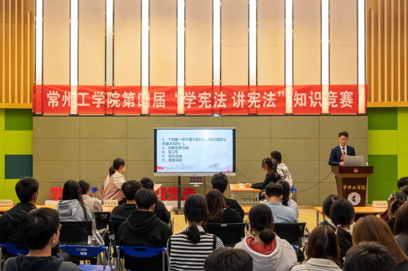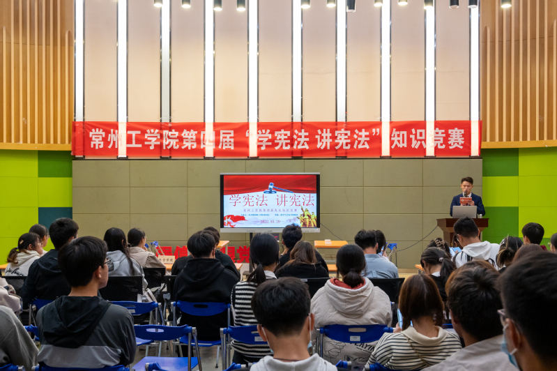 为进一步引导广大同学准确把握习近平法治思想的形成过程、重大意义、精神实质和实践要求,营造良好的宪法学习氛围,10月20日晚,我校第四届“学宪法 讲宪法”知识竞赛决赛在文化艺术中心B322举行,来自各二级学院的八个晋级代表队同台竞争,角逐冠军。100余名学生观看决赛。