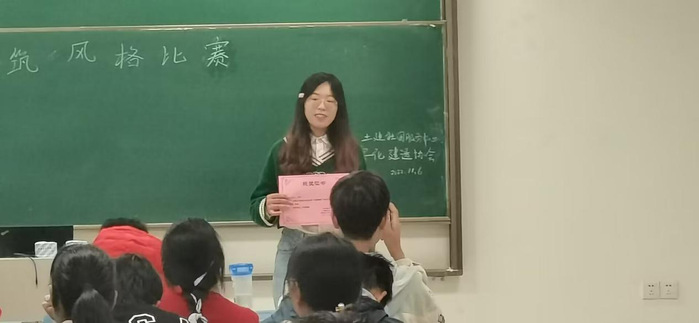 为了拓展我院学生的兴趣爱好,丰富我院社团活动的内容,展示我院学生建筑设计的水平。数字化建造协会向同学们提供一次锻炼自己,展现自己绘图才华的机会。同时,也为了激发同学们的兴趣,丰富课外文化活动,营造良好的学习氛围,数字化建造协会特地开展了“赏建筑风格”系列比赛。本次活动于2022年11月5日晚在天玑楼B308举办,由主持人社团社长张智开展。