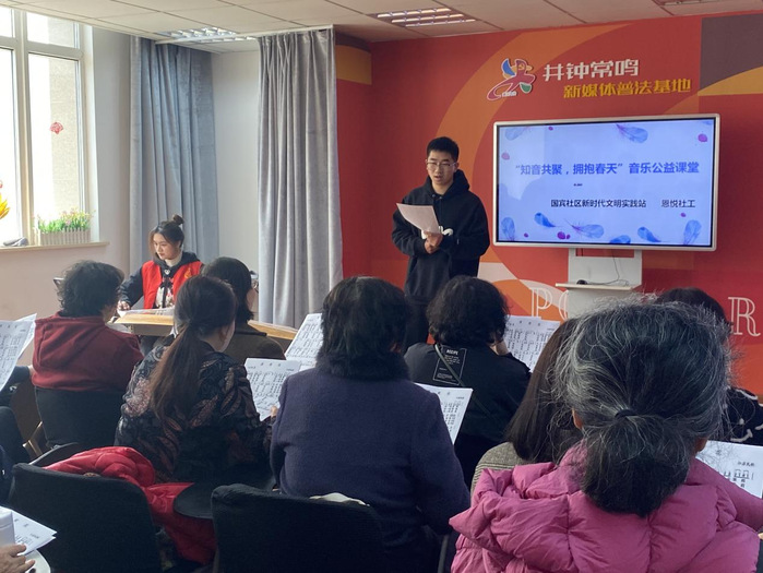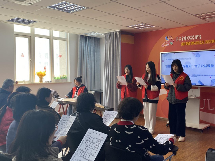 活动期间,志愿者们充分发挥自己的专业技能,以通俗易懂的语言向社区老年人讲授了合唱技巧和方法,并结合生活实例让大家学习掌握基本的乐理知识,现场进行了歌唱演示,帮助社区合唱爱好者更好的进入状态。最后,志愿者们为社区老年人演唱了歌曲《茉莉花》和《我和我的祖国》,并带领大家合唱了两首歌曲,志愿者们的演唱水平得到社区老年人的高度认可。