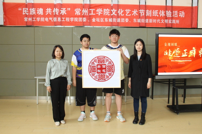 5月7日,纸上生花,“刻”照非遗之美——刻纸艺术进校园系列活动开幕式在文化艺术中心B323举行开幕式。此次活动是由常州工学院电气信息工程学院团委承办、金坛区东城街道团工委、东城街道新时代文明实践所协办,是2023年学校大学生文化艺术节系列活动之一。活动邀请传承人曹钰晈、杨珊娜、王文昌、颜有为四位老师莅临活动。