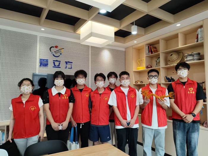 街道工作人员丁亚萍引导志愿者们参观了新桥街道“特色空间”——爱立方。在这里聚集许多残障人员,分布在不同流水线上进行电子元器件装配和焊接。她介绍,街道组织残障人士工作,是想通过帮扶,让他们在能力范围之内实现人生价值,让人生更精彩。此外,街道还为他们提供非遗文化产品的学习和制作,比如刻纸、编织等。