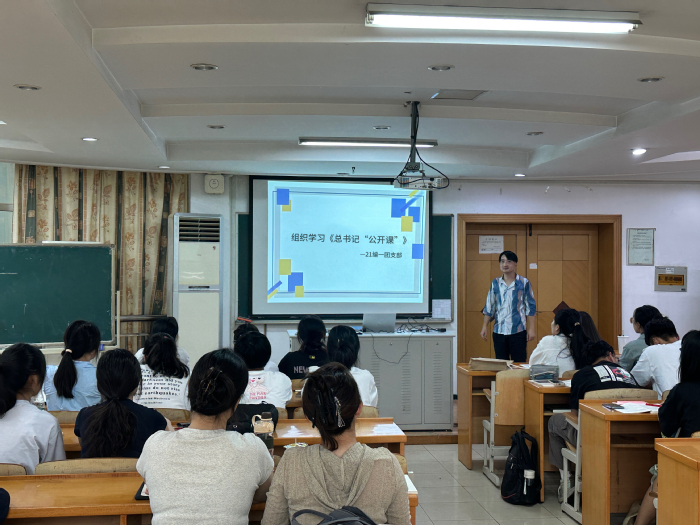 为深入学习宣传贯彻习近平总书记重要讲话精神,引导团员青年切实从总书记的“知”与“行”中汲取奋发进取的智慧和力量,10月19日,21编一团支部在2号楼225教室开展组织学习《总书记“公开课”》主题团日活动。活动由班主任杨曙老师主持。