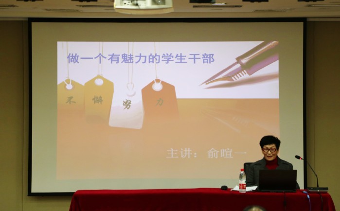 俞暄一以《不懈努力,做一个有魅力的学生干部》为题,从成为一个有魅力的学生干部和如何成为一名有魅力的学生干部两个方面作能力提升讲座。她强调,作为学生干部,一是要有“自信与激情”,学生干部在生活中做到自信阳光,在学习上做到积极主动,充分展示大学生的青春活力;二是要有“素质与魅力”,学生干部要严格要求自己,做好本职工作,积极带头完成,增添自身魅力;三是要有“方法与魅力”,学生干部要认真思考各种问题,定期总结工作经验,成为同学心中的学习榜样,老师身边的得力助手。俞暄一幽默风趣又不失思想深度的阐释使学生干部深受启发、获益良多。