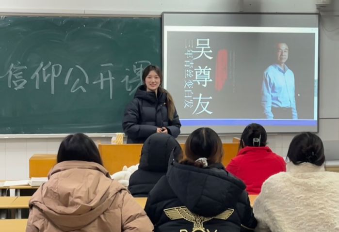 在本次信仰公开课最后,朱奕霏提出要以吴尊友先生为榜样,作为新时代青年,应该把个人理想融入国家和社会发展,把个人命运同民族命运紧密联系,保持初生牛犊不怕虎的精神,越是艰险越向前的刚健勇毅,勇立时代潮头,争做时代先锋。