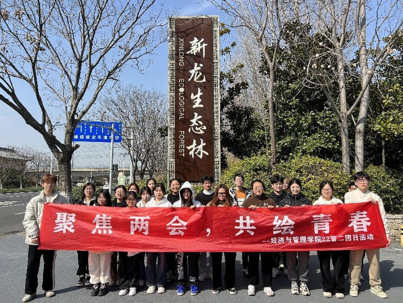 3月20日,经济与管理学院2022级工商管理专业2班团支部前往常州新龙生态园开展“聚焦两会 共绘青春”主题团日活动。