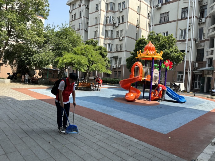 劳动教育进社区。活动前,班级团支部与钟楼区清潭第五社区进行了志愿活动对接。5月18日,在社区工作人员的指引下,支部同学分工明确,配合默契,对社区内部分楼道进行擦拭和打扫,将被随意丢弃的垃圾进行了处理,并主动对儿童游乐区进行清洁。尽管天气炎热但大家热情不减,社区工作人员对同学们的亮眼表现表示高度肯定。