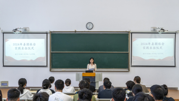 6月28日,航空与机械工程学院/飞行学院于天枢楼B201举行2024年暑期社会实践暨“双进行动”出征仪式。会议由辅导员宋吉娜主持,学院党委副书记陆婷、全体辅导员和暑期实践团队负责人参与了本次大会。