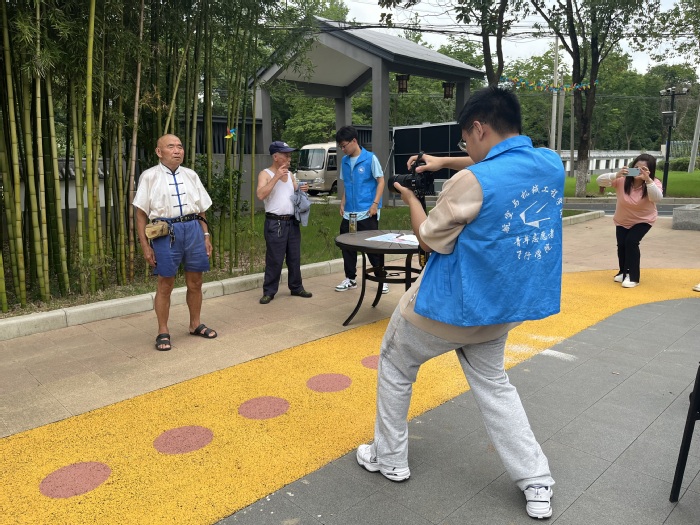 镜前定格夕阳颜,时光绘制暮年图。活动最后,志愿者们注意到老人住所中缺少自己的照片,大多老年人也有拍照需求,但碍于年事已高,行动不便于是将此事置于脑后。对此,志愿者团队当即决定利用现有专业摄影设备主动提出帮助老年人完成挂念已久的摄影心愿。“爷爷,您笑一个”“奶奶您看,刚刚笑得多好呀”···每一次拍完后,摄影师志愿者都会和老人欣赏刚刚定格的笑颜。拍摄结束,团队成员承诺待照片洗出来后会邮寄至养老院送给老人,老人们连声感谢志愿者,不断夸赞“你们这些娃娃真是太帮忙了啊”。