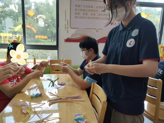 为深入贯彻落实党的二十大精神,切实加强对困境儿童的关心关爱,8月1日,艺术与设计学院“艺”启未来关爱服务实践团走进常州市儿童福利院,发挥自身艺术特长,带领孩子们开展了扭扭棒手工制作、建军节影视赏析、中国旗帜知识科普、空气阻力科普课堂活动,引领孩子们走进艺术与知识的世界,用实际行动诠释新时代青年的责任与担当。