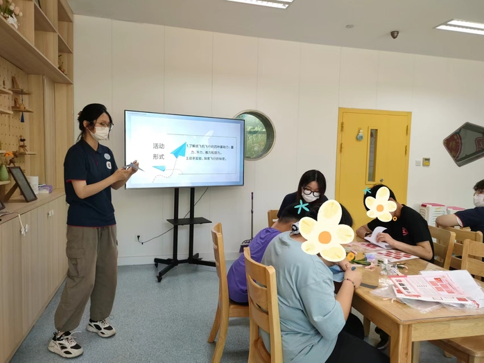 “艺”起科普,科学未来。空气阻力科普课堂中,团队成员带领孩子们认识了空气阻力的存在,讲解完基本知识后,团队为每一位孩子准备了一份“燕子纸飞机”的材料包。在志愿者的耐心指导下,每一位孩子都成功的制作出了属于自己的纸飞机,孩子们激动的放飞,并且发现纸燕子的运动轨迹都是盘旋而下的现象。通过实践学习加深了他们对空气阻力的理解,激发了他们对物理学和空气动力学的好奇心,增强了他们的观察和分析能力。
