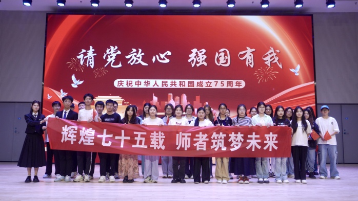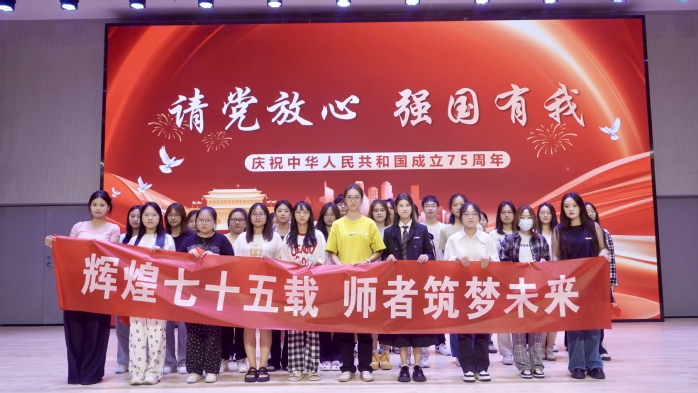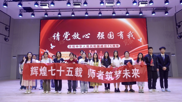 为庆祝中华人民共和国成立75周年,激发同学们的爱党爱国情怀,2024年9月27日晚,师范学院在粹化楼音乐厅举办了一场以“辉煌七十五载,师者筑梦未来”为主题的教育活动,共同庆祝中华人民共和国成立75周年华诞。本次活动由师范学院团委主办,学院天华民乐团、星光艺术合唱团、崇师社、幼学社以及各班级学生代表参加了本次活动。