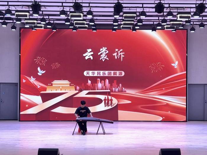 天华民乐团的二胡齐奏《赛马》将活动推向了第一个高潮。激昂的旋律中,万马奔腾的壮阔景象跃然眼前,展现了中华民族勇往直前、不屈不挠的精神风貌。云裳古韵高潮涌,画卷如诗醉众人。古筝曲《云裳诉》的演奏更是将活动推向了另一个高潮。戴源同学以精湛的技艺,将古筝的韵味展现得淋漓尽致,仿佛为观众描绘了一幅幅细腻的中国画卷,让人沉醉其中。