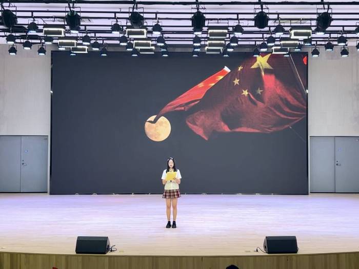 本次活动以“爱国·红色”为主旋律,共分为诗朗诵、爱国故事我来讲、器乐演奏、红色歌曲演唱等四个环节。诗韵悠扬启幕时,月华如练映国图。活动在一场精彩绝伦的朗诵中拉开序幕,23小教四班刘维佳同学以《月光下的中国》为题,用其深情并茂的声音,勾勒出一幅幅动人的中国画卷,让观众仿佛置身于那片辽阔而美丽的土地之上,使人流连忘返。乐动山河声韵悠,马跃千川展豪情。青春朗诵展风采,热血颂国燃激情。崇师社同学们带来的《青春中国》朗诵成为活动一大亮点,他们以饱满的热情和真挚的情感,颂扬了青春与祖国的紧密相连,展现了新时代青年对国家的热爱与憧憬,赢得在场观众的热烈掌声。