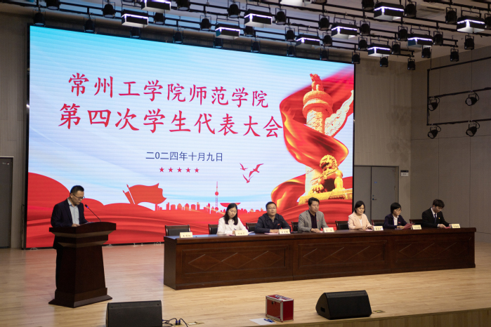 10月9日下午,常州工学院师范学院第四次学生代表大会在粹化楼一楼音乐厅隆重召开。师范学院党委书记肖华、党委副书记王爱祥、副院长杨张志欣、副院长杨丽莉、校学生会轮值主席王金闽、全体辅导员以及140名学生代表参加了会议。会议由院团委书记王同灿主持。