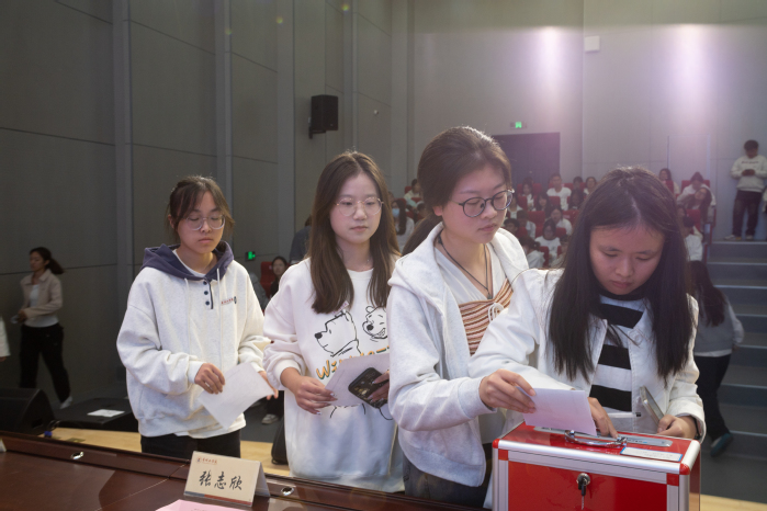 在正式会议上,詹奕霏代表上一届学生会主席团作学生会工作报告,报告对2023年学生会工作进行了总结,并对今后学生会深化改革和重点工作进行了规划和展望;大会审议通过了资格审查报告、大会选举办法、工作人员名单;经过代表现场选举、计票等环节后,大会选举产生了由徐尧、成依凡、蒋佳言组成的师范学院新一届学生会主席团。徐尧代表新一届学生会主席团进行了发言,她对上一届学生会主席团的辛勤付出表示感谢,并表达了新一届学生会主席团将继续秉持服务全院师生的宗旨,促进同学全面成长成才,积极对标学院学生工作目标任务,高质量高标准完成各项工作,助力学院各项事业高质量发展。