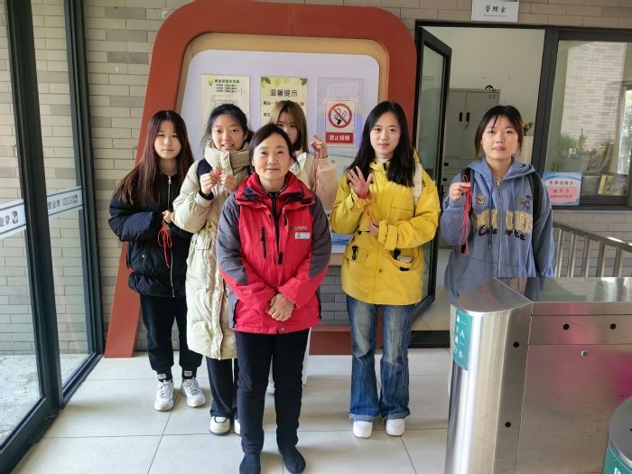课后,同学们通过摆摊的方式将编织的同心结等进行义卖,义卖所得钱数捐给了中华社会救助基金会,以自己的方式表达新时代青年愿像“常州三杰”一样关注社会,感恩社会。为了让更多人体味被感谢的快乐,被他人重视的惊喜,同学们主动向周围一些默默付出的人传递温暖:劳心劳力地关注同学们宿舍安全的宿管阿姨:不顾寒凉酷暑带给大家各类美食体验的小商贩;兢兢业业保卫学校安全的保安大叔等等。