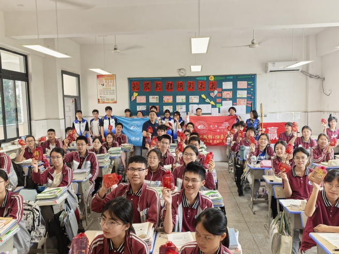 活动当天,志愿者们精心准备了寓意“高中(zhòng)”的“高粽”礼袋,每份礼袋附有“乘风破浪”“芒种深耕,金榜题名”等励志贴纸,既传承端午食俗,又巧妙融合芒种时节的耕耘精神,鼓励初三学子奋勇拼搏,传递对他们的鼓励与支持。
