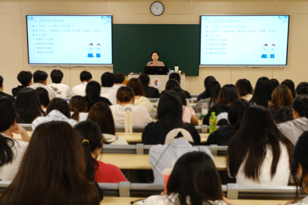 万莹以“如何做一名优秀的学生干部”为题从学生干部的角色和定位、学生干部应具备的素质和能力、学生干部应处理好的几个关系、关于我院学生会的一些思考四个方面给学员们上了生动一课。
