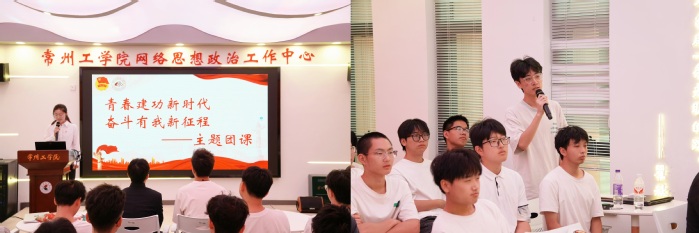 一堂主题团课,感悟信仰力量。活动伊始,学院宣讲团成员王于豪以“以青春活力之姿,担教育强国之任”为题,生动讲述了“常州杰出“瞿秋白、张太雷、恽代英革命事迹,并结合身边事迹举例激励同学们传承红色基因,践行“强国有我”的誓言。随后,徐忠艺以“青春建功新时代,奋斗有我新征程”为题聚焦榜样力量、担当精神与志愿服务从谢依特小学的支教到张桂梅校长的事迹切入,号召团员青年以爱国之心践行青春使命。