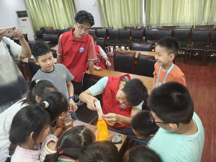 活动中,“动漫启迪”小组通过播放《那年那兔那些事儿》《血与心》等经典影片,结合中国近现代史提问,引导孩子们感受先辈奋斗的艰辛与新时代的美好;通过《18岁的流水线》纪录片讲解,激发学习动力和社会责任感。科学活动中,志愿者们带领孩子们调制非牛顿流体、模拟流星雨实验,在动手实践中培养科学兴趣。文化技能方面,志愿者教授硬笔书法传承文化,开展“纸艺灵动”折纸课锻炼动手能力。安全课堂上,志愿者重点讲解防溺水、防中暑和交通安全知识,为孩子们筑牢假期安全防线。