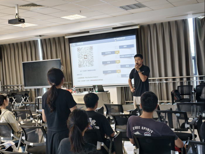 选聘会上,企业HR李元昊向在场学生详细阐释了立讯精密于新能源、智能制造等前沿领域的业务规划,并重点介绍了为电气专业人才设计的职业发展通道。随后的互动环节中,学生们针对岗位职责、技能要求等积极提问,HR均予以细致回应。活动现场,多名学生投递了简历并完成初步面试,其表现充分体现了电气学院学子扎实的专业功底与良好的综合素养。
