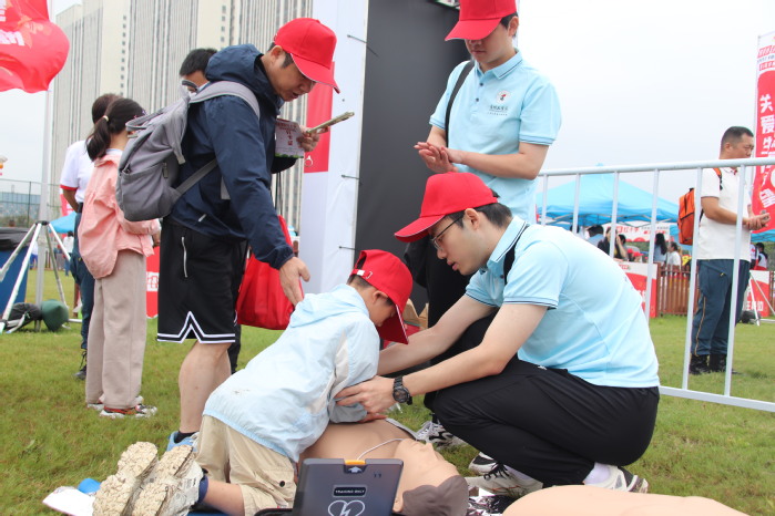 本次赛事以公益宣传、知识普及与趣味运动结合为亮点,设置四大互动区域。在生命守护站和知识问答区,志愿者们积极协助工作人员进行造血干细胞捐献知识的科普讲解,引导市民参与有奖问答。在急救示范区,志愿者们认真观摩学习后,协助专业救护人员维持秩序、分发材料,并配合进行心肺复苏(CPR)、自动体外除颤器(AED)使用等急救技能的演示教学。在足球挑战场,志愿者们则化身裁判助理、计分员和秩序维护者,确保了趣味比赛的公平有序与欢声笑语。