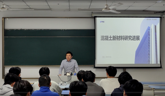 顾荣军深耕土木工程领域多年,以“新型材料与智能技术赋能工程实践”为主题,结合大量实际案例讲解,打破传统理论教学壁垒。在新型混凝土材料专题,他围绕超高性能混凝土(UHPC)等材料的技术特性与应用场景展开阐述,从跨海大桥到高层建筑,从地下工程到既有建筑修复,清晰呈现新型材料如何突破传统技术瓶颈,为工程质量提升提供关键支撑,让学子直观感受科技创新对行业的驱动作用。