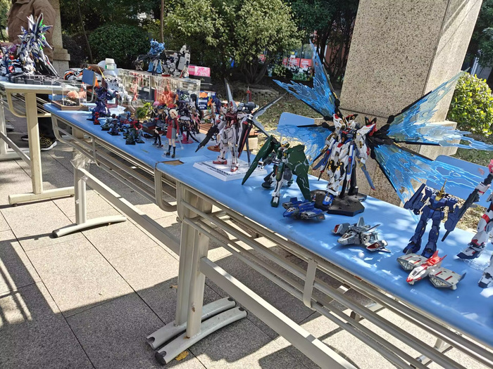此次展览共展出80余件作品,模型种类丰富,包括军事模型、高达、汽车模型等。活动还根据模型的不同类型设置了不同的展览区域,其中,高达模型展览最受欢迎,是模型类型覆盖面最广的区域。其他展览区域也是各具特色,汽车模型区展示了小型车模,人形区为战锤40K的兵人展览,主要展示了兵人如何从白模逐步手工喷涂制成一个个不同角色的过程。此外,该展区还展出了一些可供参观者现场制作的模型,如EG模型,这类模型的特点是便于制作与携带。现场气氛热烈,社团成员和同学们积极互动,解释每件作品背后的故事和技术,充分展示了我们的团队精神和专业能力。