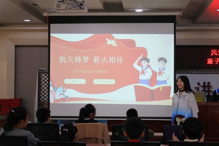 活动伊始,宣讲员以“航空航天里的红色密码”为题,用通俗易懂的语言,系统回顾了中国航空航天事业从“两弹一星”到载人航天、从嫦娥探月到天问探火的奋斗历程。通过一段段珍贵影像和感人故事,重点讲述了老一辈航天人自力更生、为国奉献的崇高精神,引导青少年从中汲取爱国情怀与奋进力量。