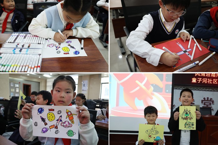 创意绘画环节将现场氛围推向高潮。孩子们化身“小小航天设计师”,用画笔描绘心中的太空梦想,勾勒出对祖国航天未来的美好祝愿。一幅幅充满想象力的画作,不仅是童心的展现,更是红色基因与科学种子在幼小心灵中生根发芽的见证。