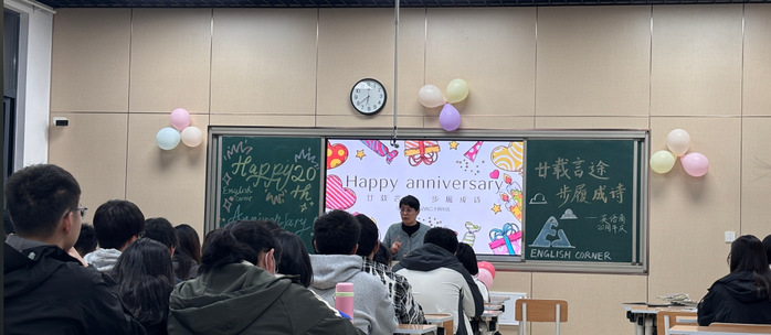 为纪念英语角社团成立20周年,不忘“激发英语学习热情搭建多元交流平台”初心,进一步营造英语学习文化氛围,英语角社团近日成功举办周年庆活动。