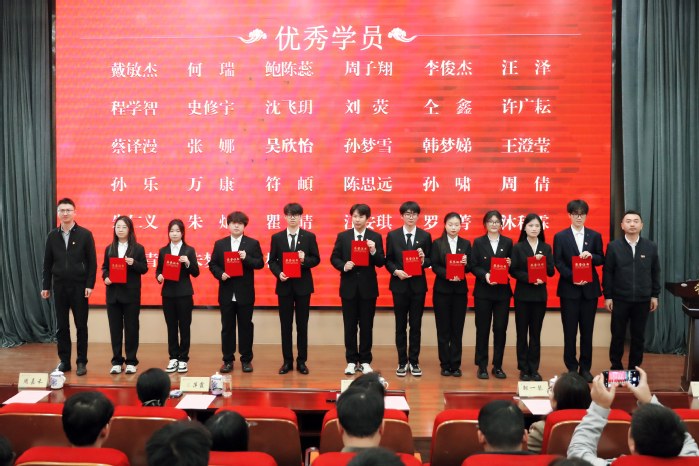 活动伊始,顾勇宣读《关于授予第十二期“青马工程”培训班学员结业证书和表彰优秀学员的决定》。周嘉禾、顾勇为优秀学员代表颁发荣誉证书。江苏省第十九期“青马工程”参训学员戴一轩发言,分享学习体会。王萍霞、邹一琴为第十三期“青马工程”培训班授旗。随后第十三期“青马工程”培训班学员代表贺彦葵发言,他代表全体新学员作出承诺。