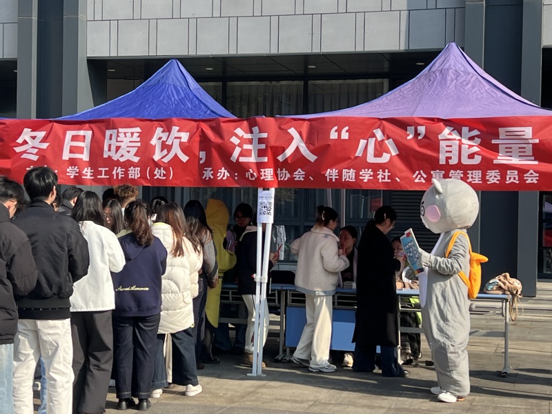 寒冬已至,暖意充盈。为切实关爱考研学子,助力家庭经济困难学生温暖过冬,11月21日下午13:30,伴随学社联合心理协会在图书馆西广场成功开展以“冬日暖饮,注入‘心’能量”为主题的送温暖活动。