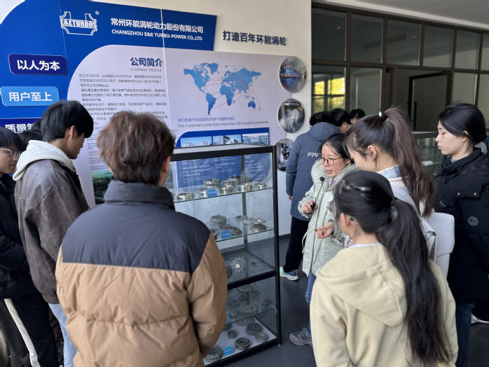 2025年11月25日,为切实提升大学生职业生涯规划能力、促进毕业生高质量就业,我院由学生工作办公室主任季銮顺带队,携2026届毕业班辅导员及全校毕业生代表共30余人,赴国家级高新技术企业—常州环能涡轮动力股份有限公司开展“校企专列 ‘职’通职场”主题活动。本次活动通过实地参观、技术交流、现场招聘等形式展开,为校企协同育人注入新动能。