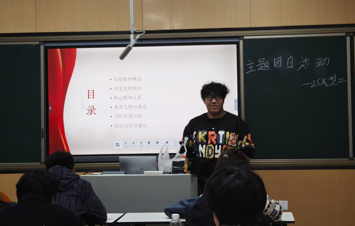 活动中,同学们首先观看了关于中国女排精神的专题视频,体会到了女排精神的核心内涵——顽强拼搏、永不言弃、团结协作等。随后,在团支书崔玄宇同学的引导下,同学们围绕“学习女排精神带来的感悟”这一主题展开了热烈讨论和分享。大家纷纷结合自身感受,从不同的角度阐述了对女排精神的理解与启发。