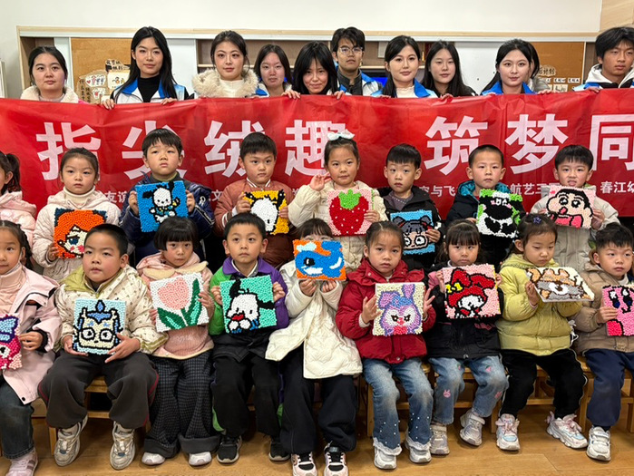 彩色毛绒翻飞,笑语浸润心田。近日,航空与飞行学院25航艺三班团支部组织青年志愿者走进常州市新北区春江幼儿园(百馨西苑园区),以“指尖绒趣,筑梦同行”为主题开展公益团日活动,用创意手工与暖心陪伴为孩子们编织欢乐时光。